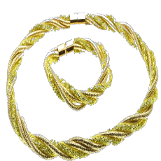 Nydelig grønt kjede og armbånd. Praktisk mangnetlås gjør det enkelt å ta av og på. Kan kjøpes sammen eller hver for seg. Kjedet er 45 cm langt og armbåndet er 20 cm.